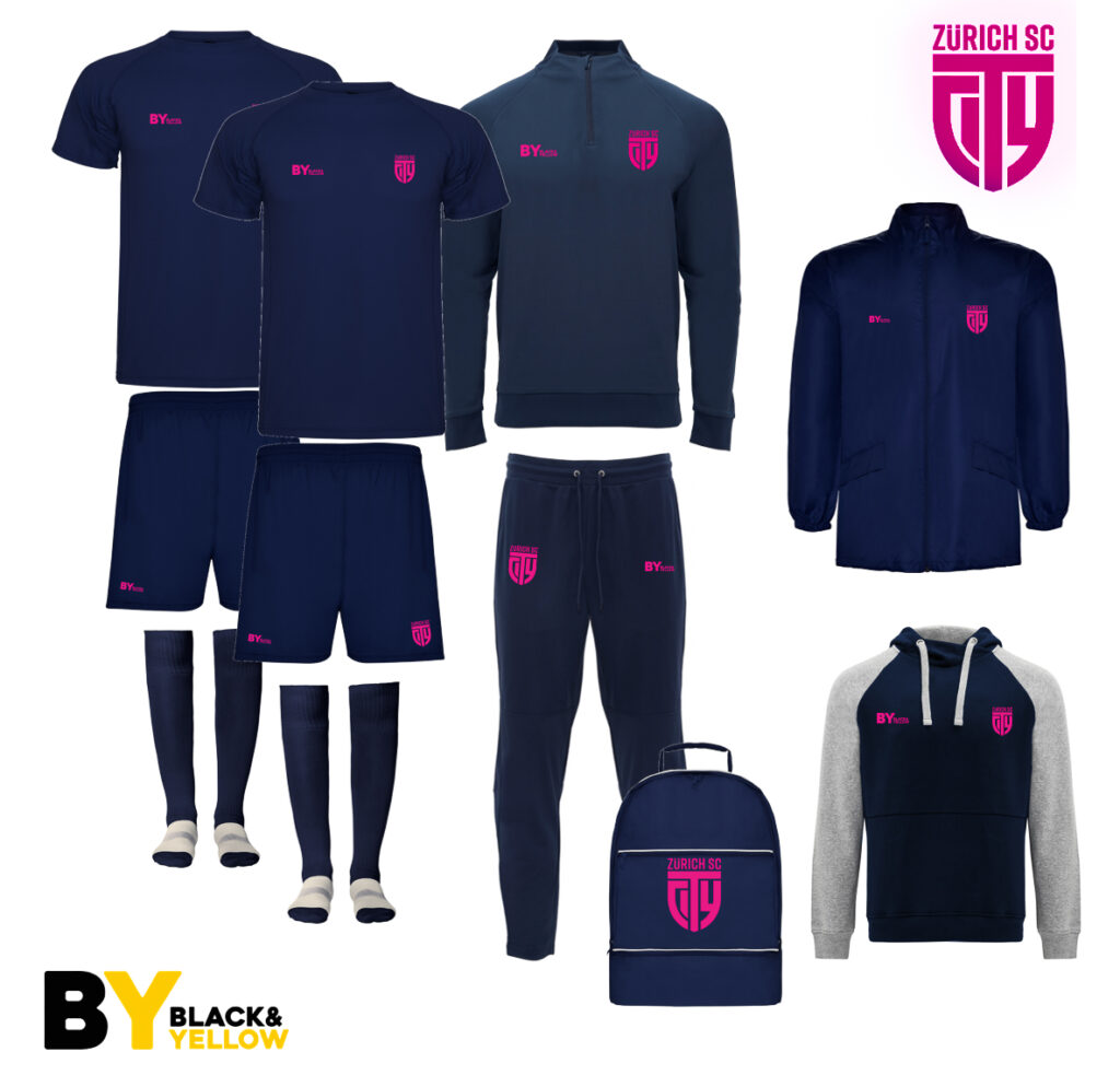 Die beiden Kollektionen unterscheiden sich durch das Zürich City SC Logo. Bei den Männer ist dieses in der Standardfarbe, bei den Frauen in Pink.
